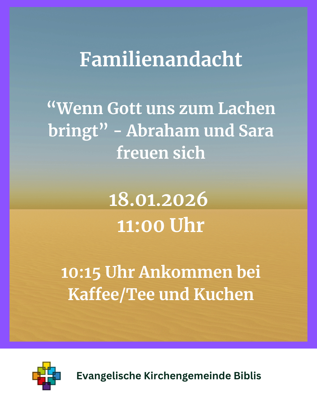 In unserer generationsübergreifenden Familienandacht begegnen wir Abraham und Sarah. Die beiden freuen sich – und warum das so ist, erfahrt ihr bei uns.