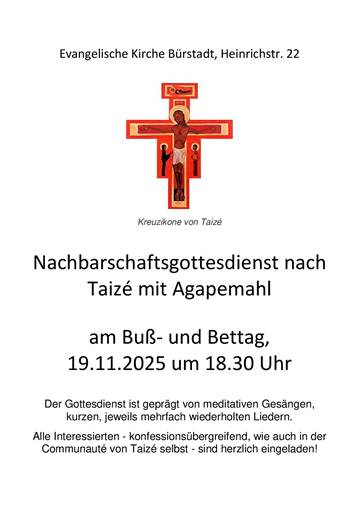 Ab Januar 2026 finden unsere Gottesdienste immer am 1. Sonntag und ggf 5. Sonntag im Monat um 9:30 Uhr statt.